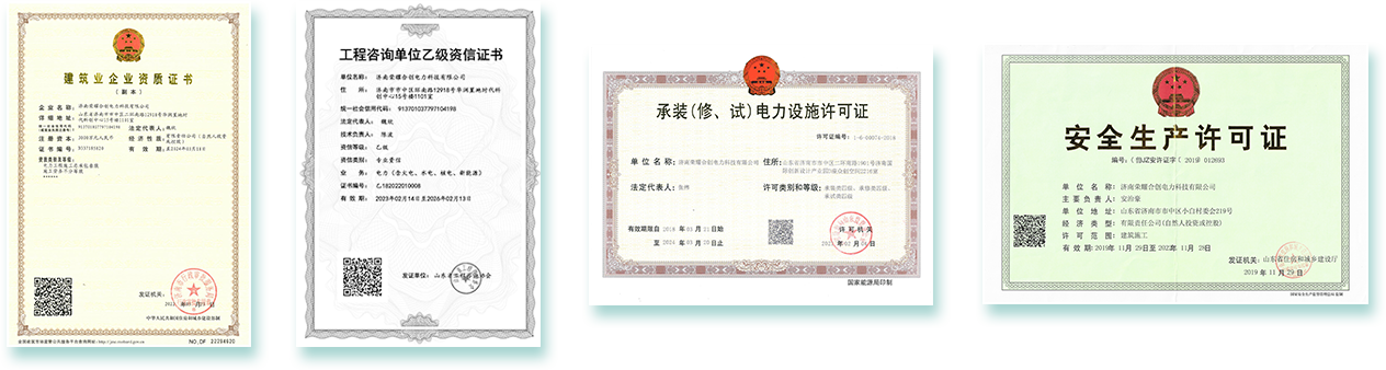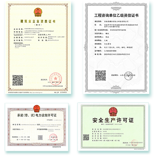 电力工程施工总承包贰级证书 | 施工劳务资质证书 | 承修电力设施许可证三级证书 | 承装(试)电力设施许可证四级证书 | 安全生产许可证 | 工程咨询单位乙级资信证书