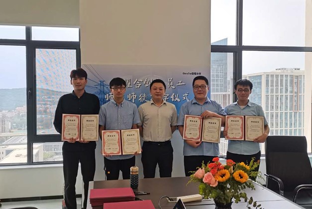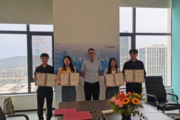 7 月 29 日下午,在公司总部会议室举行了首届荣耀合创新员工师生师徒签字仪式,特邀张总和魏总作为首届职业发展导师,另有用人单位的业务技术师傅代表共 17 人参加,仪式由综合指导中心主任柳总和行政部刘晓龙共同主持。