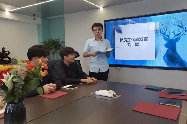 首先,柳总宣贯了公司《2022 年应届毕业新员工“双师制”管理方案》试行办法,并对两位 “导师”和六位“师傅”的学习及工作履历做了详细介绍。随后,由行政部刘晓龙公布师生师徒结对方案,并组织师生师徒在证书上庄重签字。接下来是新员工代表刘斌发言,他表示感谢在培训期间公司的精心组织和各位授课老师的用心培养,今后一定努力工作,为创造公司的美好明天贡献力量;师傅代表王菲菲发言,表示在今后带徒过程中定会知无不言,言无不尽,履职尽责;魏总最后发表导师寄语,他对此次师生师徒结对表示祝贺,希望新员工保有坚持的心,胜任工作岗位,激扬青春活力, 迅速成长提高。